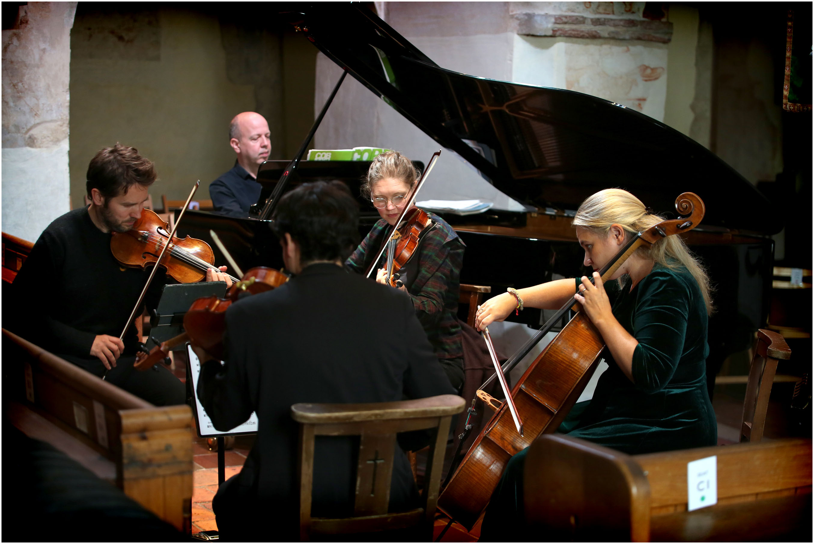 Huw Watkins and the Piatti Quartet at Little Missenden photo Robert Piwko 2025